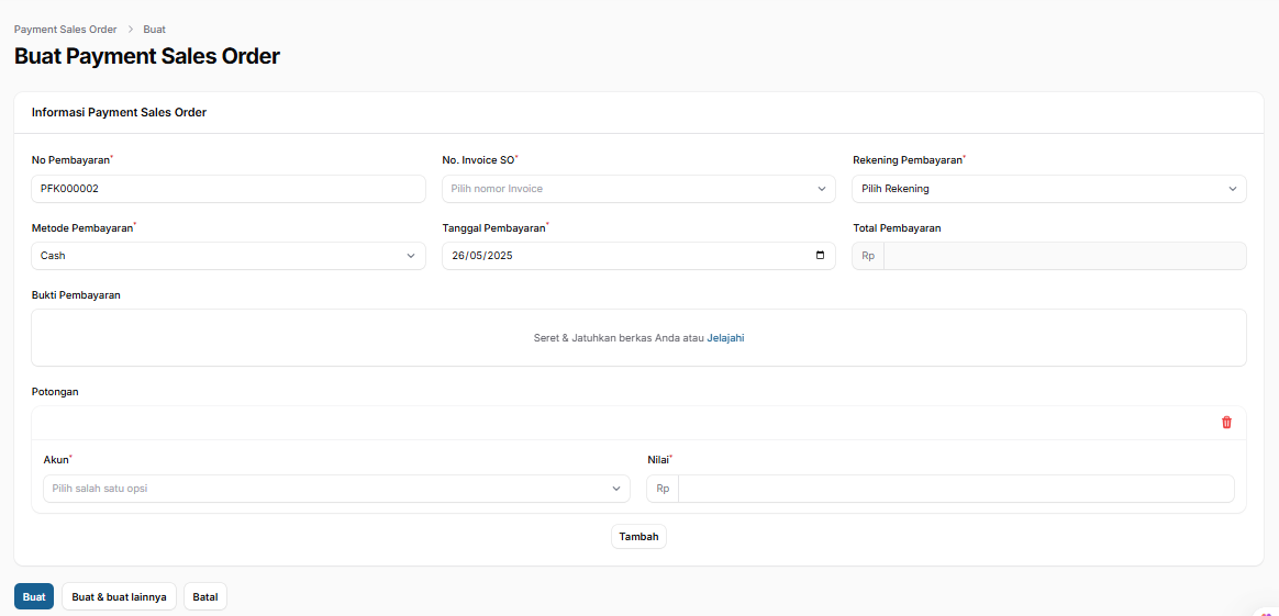 Detail Payment Sales Order: Melihat informasi lengkap Payment Sales Order.